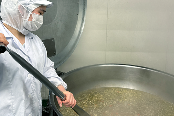 品質衛生水準を満たすため、仕入れからお届けまで徹底した温度管理を行っています。毎食分、芯温計を使った温度測定を実施。食品の表面温度ではなく中心部の温度を測定し、中まで確実に火が通ったかチェックしています。